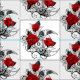 Contorno, lua da crista mecânica com engrenagens, decorada com rosas vermelhas com caules e folhas pretas em fundo branco. Steampunk