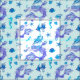 Linda, esquisita, roxa e turquesa Criatura do Oceano Fada, esta Sereia é Swimmingm e parece brincar, cercada por Starfishes, conchas marinhas, algas, Fishes, e segurando um pequeno cavalo marinho em sua mão; todos os elementos são montados para compor um padrão sem falhas. Ilustração vetorial Copyright BluedarkArt.