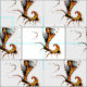 Um design de abstrato de arte de um mítico dragão voador em vermelho, ouro e preto, também deixando uma imagem de seu percurso de voo.