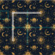 Tecido Crie sua própria Lua e estrelas Douradas e azuis