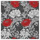 Tecido em um vintage William Morris, arte Nouveau, impressão floral de crisântemos estilizados, digital aumentado e colorido, nas máscaras das cinzas de prata /grey e do branco, acentuadas com vermelho escuro, em um fundo escuro das cinzas da grafite