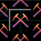 Martelos rochosos cruzados em preto e roxo vermelho.