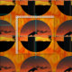 Silhueta Sombra de um corvo em um posto contra um pôr do sol brilhante. O primeiro plano é preto profundo enquanto o fundo é preenchido com amarelos e laranjas do pôr do sol. Essa imagem será impressa, mas o estilo é destinado a dar a impressão de uma pintura.