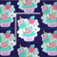Tecido padrão com uma ilustração fofinha apresentando um cupcake e um sorvete sorrindo de alegria. Um arco-íris e corações rodeiam o desenho. Uma nuvem fofa e fofa também está sorrindo de felicidade. O cupcake e o sorvete têm um trompa de unicórnio em cima. Cheio bonito e adorável de alegria.