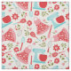 Padrão temático da Vintage apresentando aventais, mixers, utensílios de cozinha e flores em tons de rosa, vermelho e azul. Perfeito para projetos de cozinha de chique.