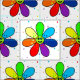 Um teste padrão telhado de uma flor do arco-íris em um fundo dotty colorido.