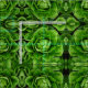 Este tecido é imprimido com uma fotografia de uma cabeça da alface de alface romana. Cria um teste padrão geométrico verde.