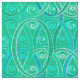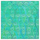 Ornamentado, tecido de espiral arabesco em tons suaves de turquesa, aquamarina, azul-marinho e lacre, esboçado em branco, com fundo aqua