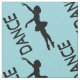 Um design tecido com um padrão repetitivo de silhueta de uma bailarina em um fundo bonito. Esta elegante dançarina de balé está em pé nos dedos, apontada com os braços esticados graciosamente. A palavra "DANCE" escrita ao lado desta dançarina elegante.