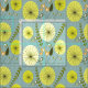 O moderno século médio inspirou o dandelion amarelo ou relógios de flores com folhas verdes em fundo verde-claro.