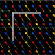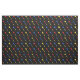 tecido na moda preto com formato de dardos vermelhos, azuis e amarelos
