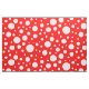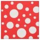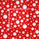 Um padrão de manchas brancas de diferentes tamanhos em um fundo vermelho brilhante.