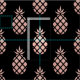 Tecido de abacaxi em preto e dourado-rosa por metr