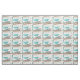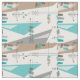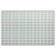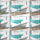 Um tecido moderno de abstrato do século médio constituído por retângulos e triângulos em cores de cor verde, castanho e cinza sobre fundo branco.