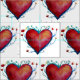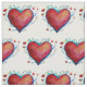 Corações de aquarela vermelha no tecido.
