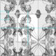 Um design espelhado de uma mulher do mucha de Alphonse com flores em um vestido de fluxo. É moldada com guarnição do pão-de-espécie.