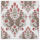 o tecido de algodão imprimiu com uma cor damasco de repetição em um tema, em um vermelho, em um creme, em um marrom, e em um preto dos macacos da peúga. Apropriado para lotes dos artesanatos, talvez cortinas bonitos ou travesseiros em uma sala ou na sala de jogos de criança.