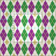 Os diamantes cobertos com os esboços ouro-tonificados do diamante e a flor de lis roxos e verdes brilhantes trazem para ocupar-se do revelry e das celebrações associados com um carnaval de Nova Orleães, quando uma base de creme adicionar um toque do refinamento a este teste padrão do argyle.