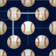 bolas de beisebol sobre tecido padrão de bolas azuis e de softball