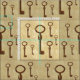 Chaves de esqueleto coloridas em cobre num fundo de vintage arenoso.
