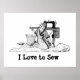 Eu poderia costurar o dia e a noite. Eu uso o chão da mesa de jantar e vou buscá-la.