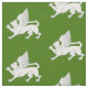 "(Sem fios) Um passante de gato alado, testa estendida, asas elevadas e ajeitadas, argent." Um padrão de crachá popular para a Baronia do Morro de Windmasters na Sociedade para o Anacronismo Criativo. A cor de fundo (mostrada em verde) pode ser alterada mediante solicitação.