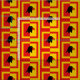 "Por glóbulos pálidos e ou, a cabeça de um falcão foi apagada a glóbulos cozidos sápidos sinistros dentro de um retângulo de laranja." Um padrão de crachá popular para o Cantão de Falcon Cree na Sociedade para o Anacronismo Criativo.