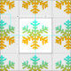 Lindos flocos de neve laranja e azul sobre fundo azul.