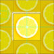 Lema amarelo brilhante fatias de arte gráfica repetem tecido com padrão. Ideal para projetos brilhantes de costura de cozinha. Arte e design por Sarah Trett.