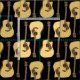 Tecido Elegante de Impressão de Violão. Com uma cor preta de fundo você pode mudar. Da etiqueta personalizada até o que você quiser.
