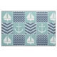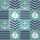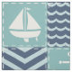 Um padrão inspirado na colcha de quadrados turquesas tempestuosos, decorados com um veleiro branco e âncora, e quadrados azuis marinhos profundos, acentuados com cavaleiros e ondas azuis paler, é acentuado pela costura branca para criar uma sensação náutica clássica.