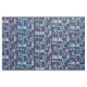 Tecido que caracteriza um teste padrão de termos de ondulação nas máscaras do vermelho, do branco e do cinza no fundo azul. Aperfeiçoe para encrespadores e fãs de ondulação.