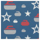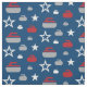 Caracterização do tecido estrelas e teste padrão de ondulação das rochas no vermelho, no branco e no cinza no fundo azul. Aperfeiçoe para encrespadores e fãs de ondulação.