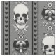 Este design gótico tem um padrão ornamentado stripado de ornamentos barrocos, crânios e corações em um esquema de cores de cinza.