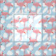 Tecido de padrão de flamingos rosa. Flamingos com palmeiras brancas tropicais sobre fundo azul são perfeitos para qualquer projeto de artesanato.