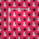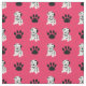 Este tecido dalmático é perfeito para quem ama esta raça de cães. O padrão vem de uma formação de pontos com estampas de pata preta e dalmatianos ilustrados. O fundo vem em vermelho.
