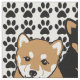os cachorrinhos bonitos de Shiba Inu em um fundo de impressão de pata, costuram uma cama de cachorro ou um par de calças hoje!