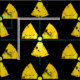 tecido do padrão do símbolo de aviso de radiação em preto e amarelo. Escolha entre vários tipos de tecidos em fibras naturais ou sintéticas.