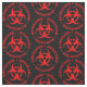 Padrão do símbolo de advertência de perigo biológico tecido a preto com símbolos vermelho vivo de perigo biológico assinalados com o texto de 'Risco biológico'. Escolha entre vários tipos de tecidos em fibras naturais e sintéticas. O padrão está desbloqueado, isso significa que você pode redimensioná-lo se precisar de tecidos com padrões mini para modelos em escala, projetos de arte, roupas de boneca, etc.