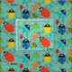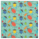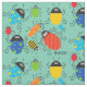 Tecido de tão muitos insetos, bonito, divertimento, colorido, características um fundo do aqua com lotes dos insetos com olhos googly, listras, e texto do ponto e o preto que lê INSETOS!