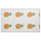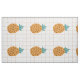 Ilustração de desenho animado de abacaxis e uma grade marrom claro e branca ao fundo decoram este divertido tecido de estofamento de abacaxi. A estampa é grande e adequada para uso em vários projetos de decoração de interiores, arte e artesanato.