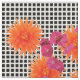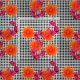 Tecido Impressão de Verificação Preto e Branco, Flores Laranja Cor-de-Rosa Gráfico Negrito. Disponível em algodão de 56" de largura, testagem, poliéster ou linho. Comprar pelo pátio. Excelente para projetos de decoração doméstica para cortinas, travesseiros ou cobrir de edredão. Projetado pelo seu ninho.