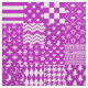 Padrões de retalhos de Designs mistos roxos e brancos de 16 diferentes ilustrações Design de Fleur-de-lis, coroas, corações, Bolinhas, chave grega, estrelas da lua, Houndstooth, Árvores, Harlequin, Stripes, Check, guarda-chuva, âncora, Chevron, blob e Designs de ilustração floral.
