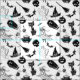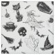 Itens de Halloween desenhados em papel e rastreados no Illustrator para criar o padrão.
