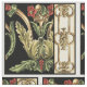 Uma pintura ornamental com design floral atrativo, fechada por bordas pretas. As cores verde e vermelha saltam dos obrigados impressão para o fundo preto. Que maravilha seria isto na sua parede? Compre e descubra!