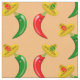 Este tecido artesanato incrível é perfeito para todas as suas marcas. A design apresenta um par de chilis, um chili vermelho e um chili verde. Ambos têm olhos pretos e bocas cor-de-rosa. Cada Chili está vestindo um chapéu sombrio que tem um crânio de cor oposta ao dos chili em comemoração ao Dia Mexicano do Festival dos Mortos, Dia De Los Muertos. O sombrero também contém três flores com pétalas vermelhas e verdes alternadas representando a bandeira do México.