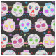 Um padrão festivo, mexicano de crânios de açúcar em tecido personalizável para criar sua própria fantasia, decoração ou artesanato para o Dia dos Mortos. Estes crânios têm muitos detalhes brilhantemente coloridos e se destacam em uma cor preta de fundo. Você pode ajustar o tamanho do padrão para atender às suas necessidades de costura e artesanato.
