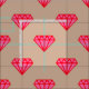Tecido com um impressão cor-de-rosa & vermelho do pop art do diamante em um fundo bege.
