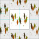 Teste padrão moderno dos diamantes do meio século nas cores do marrom, do verde e da laranja com starbursts e círculos em um fundo branco. Todos os gráficos por Gail Gabel, LLC.