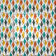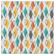 Este tecido tem um moderno século médio de diamantes em laranja, amarelo, turquesa, cinza e esboçado por todo um campo de branco.